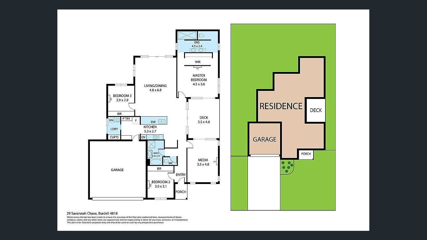 Additional features include a separate media room and a large study nook, offering flexibility for working from home or family living. The master suite is privately positioned and includes a well-appointed ensuite with dual vanities, while the remaining bedrooms are complete with built-in wardrobes and ceiling fans.